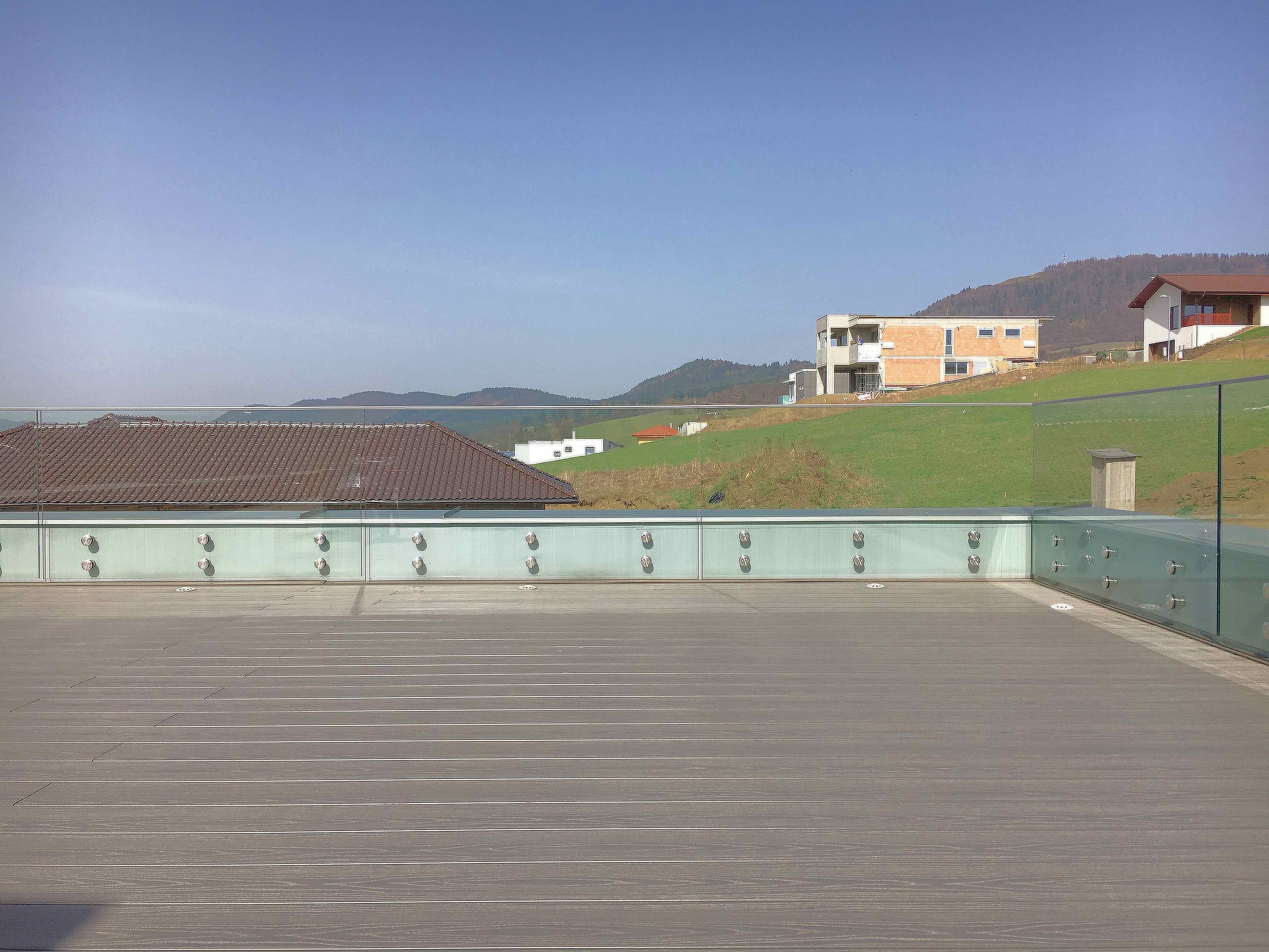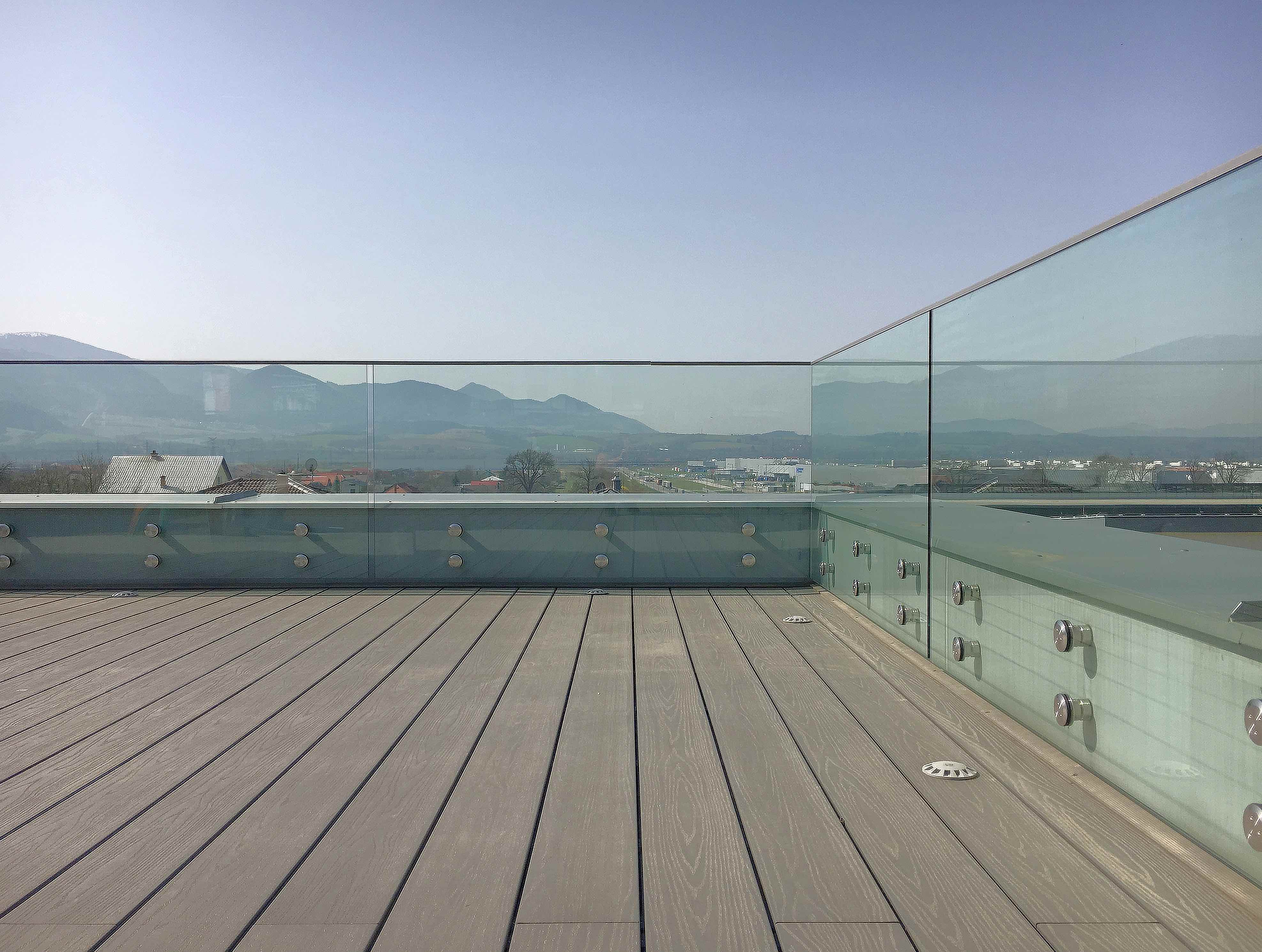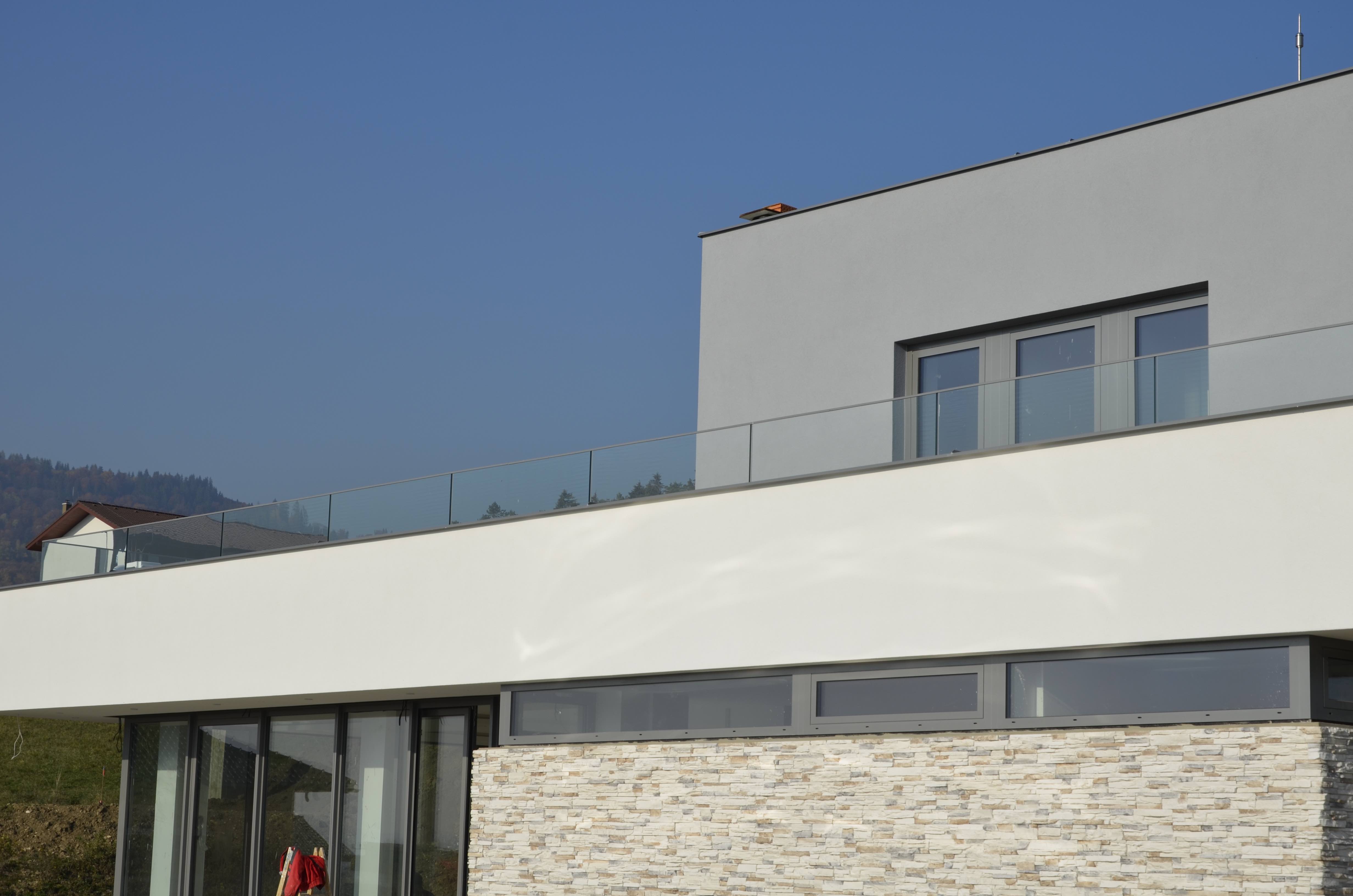 Sklenené zábradlia Sklenené zábradlie terasy na streche rodinného domu